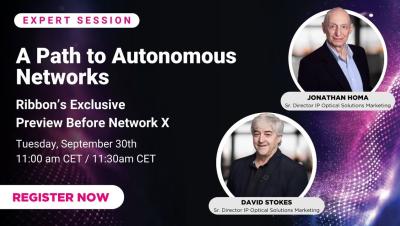 We’re getting ready to take the stage at Network X in Paris, where Ribbon has been nominated for Most Innovative Optical Transport Use Case & Most Innovative IP Transport Solution. But before that, we’re hosting a special 30-minute preview to show you what’s coming. Join Jonathan Homa and David Stokes from our Solutions Marketing team as they walk through how Ribbon is advancing toward autonomous networks with.