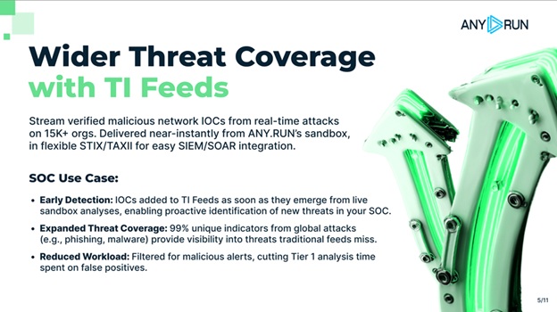 - Cut MTTR – users of ANY.RUN’s TI solutions report that it they reduced it by 21 min less per incident.