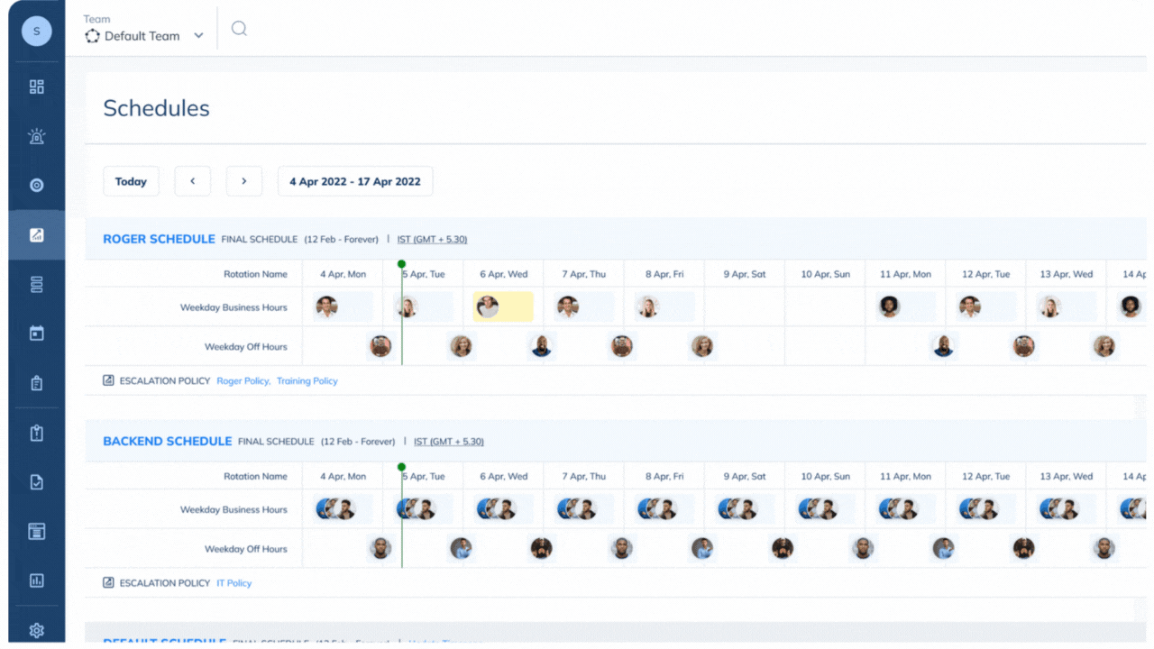 - On-Call Scheduling & Management: Having the right team ready to work on incidents minimizes downtime and ensures smooth incident response. Features like automated scheduling, calendar exports, manual overrides, schedule templates, and escalation policies, ensure the right people are notified immediately.