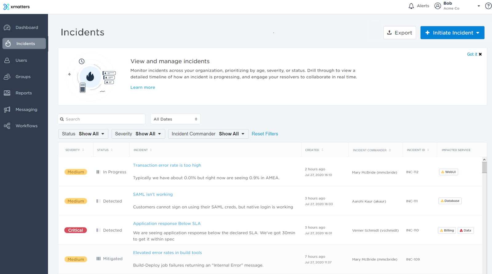 xMatters Incident Management Dashboard